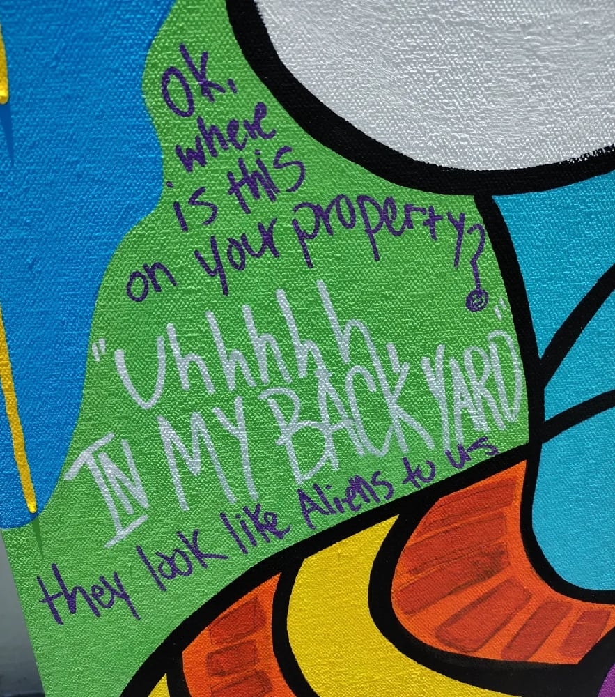 The piece is about a 2023 alien crash landing. The Alien craft landed in a backyard in New Mexico.